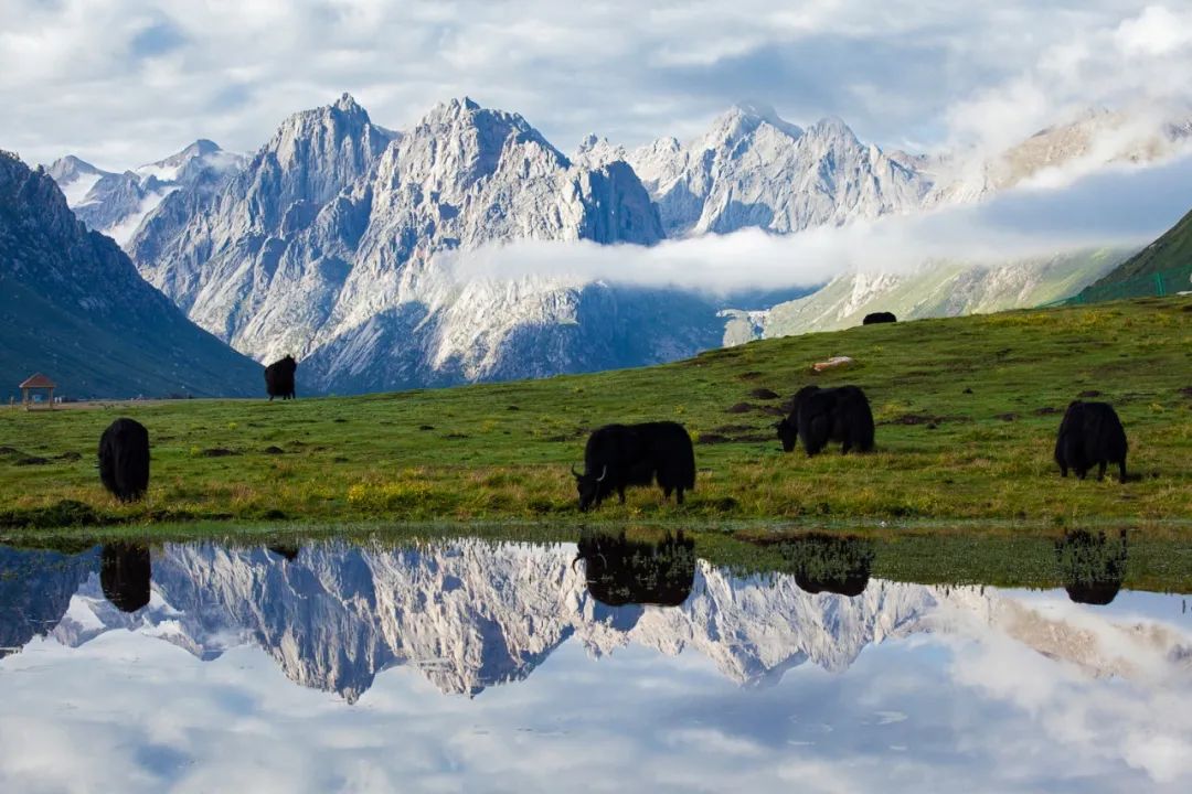 (年保玉則峰下的犛牛,攝影師@高承)▼