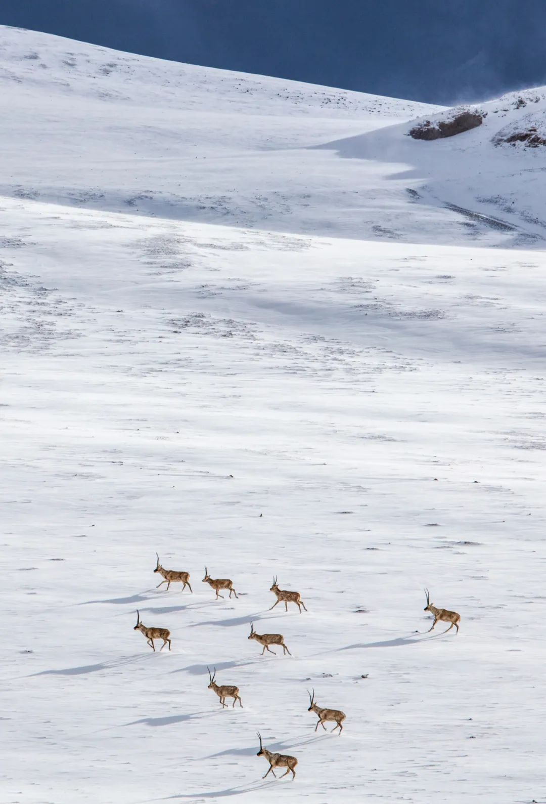 如此嚴(yan) 酷的環境之下沒有人類能夠長久居住因而大型的哺乳動物成了這裏的主人藏羚羊在這裏自由奔跑(羌塘藏羚羊,攝影師@卡布)▼