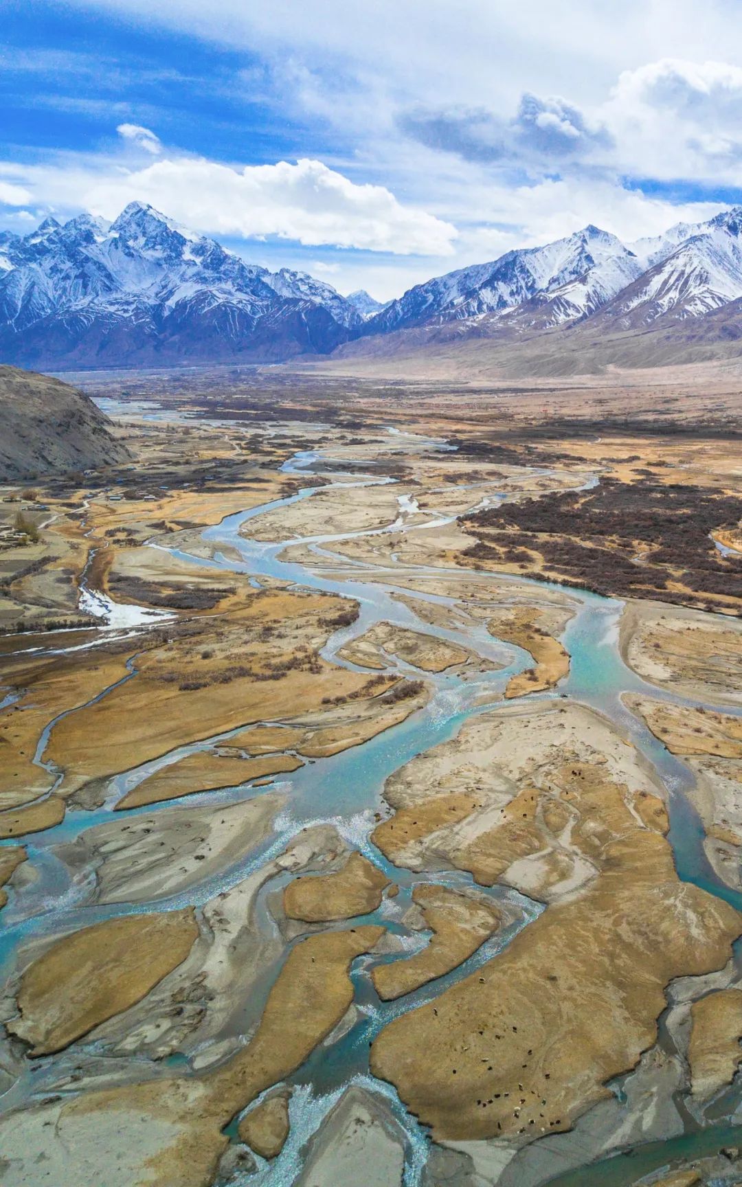大量冰川融水從(cong) 高山上流出匯集成水量巨大的河流將山體(ti) 切割出峽穀甚至可能形成洶湧的夏季洪水(請橫屏觀看,春天的塔什庫爾幹河,水量充沛,攝影師@奎濤)▼