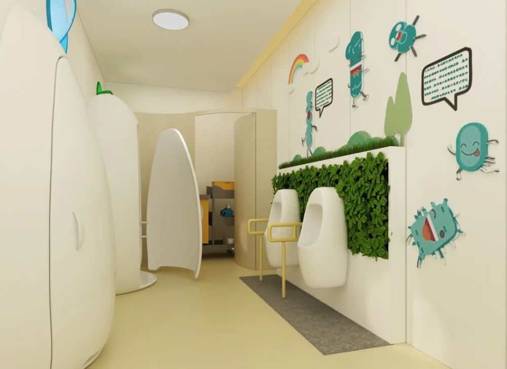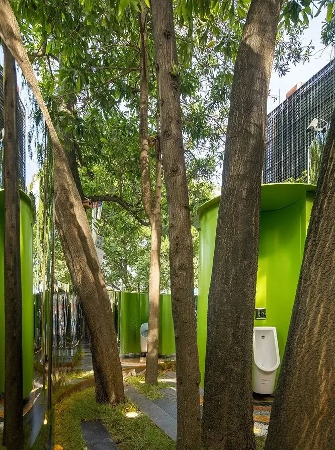 為(wei) 了方便父母帶幼兒(er) 如廁和減輕有限的廁格的壓力,在樹下別具心裁地設置了一個(ge) 綠色桶裝置。該裝置含一個(ge) 兒(er) 童洗手池,兩(liang) 個(ge) 兒(er) 童小便器。在保證私隱的前提有效地分流了部分如廁需要,同時也增添了兒(er) 童如廁的趣味性;亦消解了母親(qin) 帶男孩上衛生間可能引起的各種尷尬。