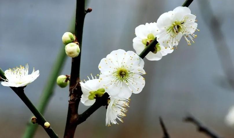 在植物學中,梅隸屬於(yu) 薔薇科杏屬,梅原產(chan) 中國南方,具有花果兼用的特性,食用和觀賞價(jia) 值都很高。中國勞動人民應用梅的曆史很悠久,據考證,梅距今已有7000 多年的應用曆史,3000多年的引種栽培史。梅的露地栽培主要分布在長江、珠江及淮河流域,大致以黃河為(wei) 界,在黃河流域以北地區多不能露地越冬。梅花開花的平均溫度是零下5℃~7℃,喜陽畏澇。因此,古時吟誦的梅花多分布在中國中、南部地區。明清時期,梅的種植栽培技術大有進步。杭州、蘇州、南京、成都等地湧現了大量梅園,清代龔自珍在《病梅館記》中記載:“江寧之龍蟠、蘇州之鄧尉、杭州之西溪,皆產(chan) 梅。”杭州的“靈峰探梅”、蘇州鄧尉的“十裏香雪”均是流傳(chuan) 至今的觀梅佳話。梅花的品種繁多,由於(yu) 長期栽培,變異性較大,現今共記錄的品種數有300多個(ge) 。後來中國學者將其分為(wei) 11個(ge) 品種群,即單瓣、宮粉、玉蝶、黃香、綠萼、跳枝、朱砂、垂枝、龍遊、杏梅以及“美人”梅品種群。
