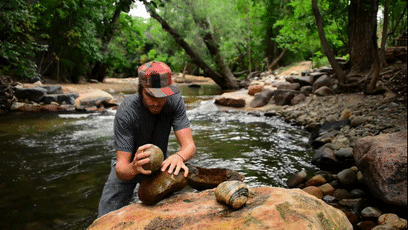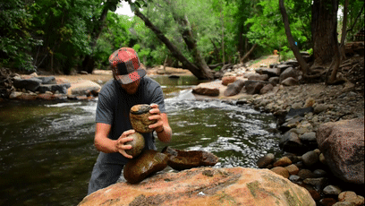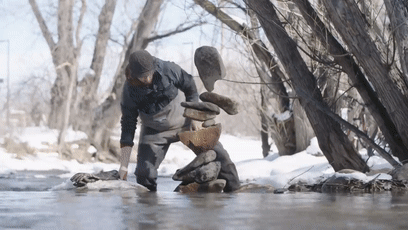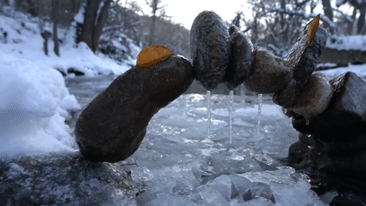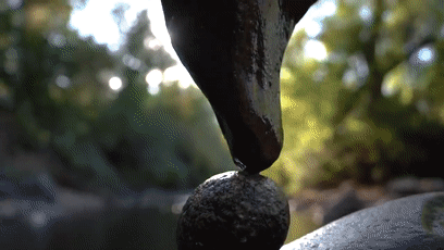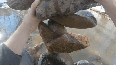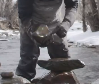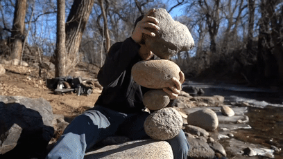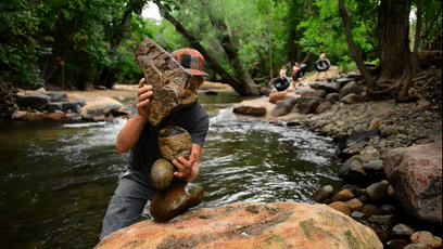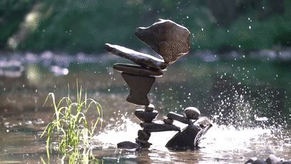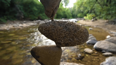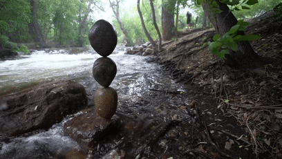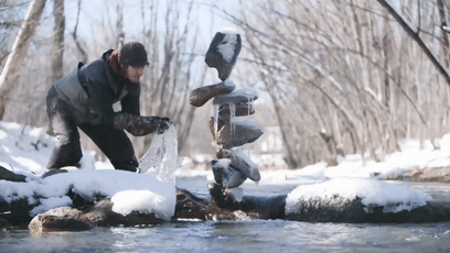 他要做的第一件事就是先找到合適的堆砌位置,正如前文所說,這種藝術作品很脆弱,要考慮很多因素,水的流動速度,或者附近岩石的質地手感,都將影響作品的成型。