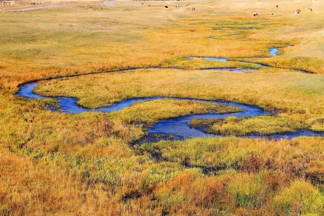 兩(liang) 岸有發育完善的河漫灘草甸和牛軛湖