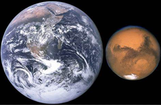 地球和火星都戴著白色帽子(圖片來源:NASA)