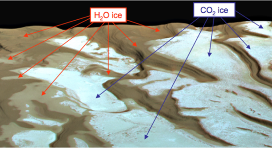 極冠含有水冰和二氧化碳幹冰(圖片來源:Science)