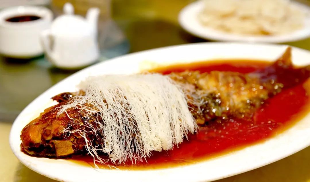 開封名吃“鯉魚焙麵”,由“糖醋溜魚”和“焙麵”兩(liang) 道菜組合而成,“焙麵”即為(wei) 龍須麵。炸製金黃的黃河大鯉魚,澆上粘稠的糖醋汁,最上鋪一層細如發絲(si) 的龍須麵。“先食龍肉,後食龍須”,一筷子夾上魚肉和麵絲(si) ,嫩脆雙重口感在酸甜味道中更加美味。