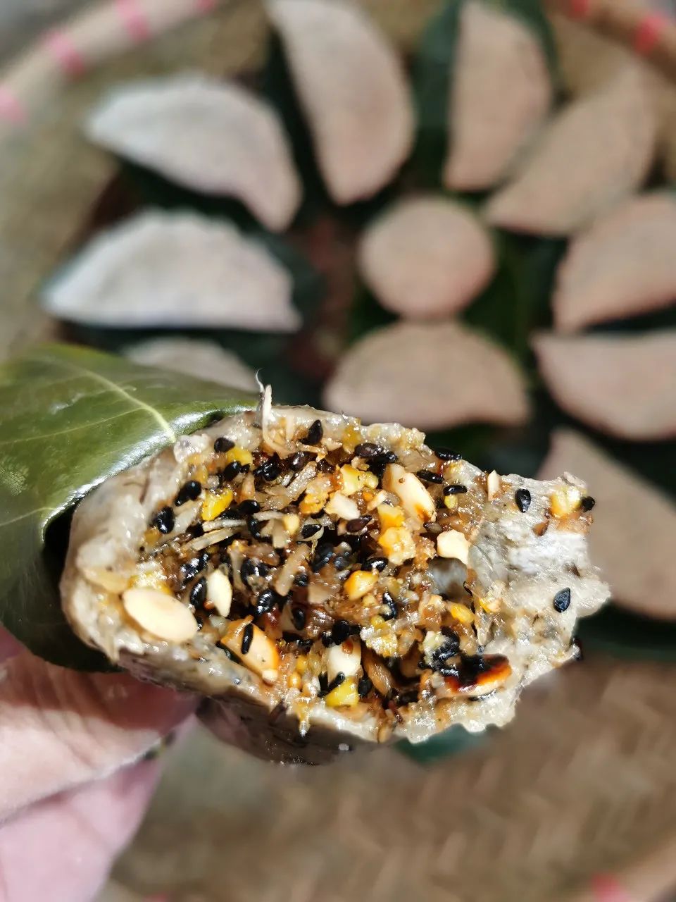 除了扣肉,客家人還有各種“釀”,豆腐釀、蒜釀、瓜花釀、蘿卜釀、竹筍釀、茄子釀等,這也是“二月二”不可或缺的美味。賀州客家人也有在“二月二”吃糍粑的習(xi) 俗,他們(men) 還要放棠梨葉,傳(chuan) 說是吃了不怕雷聲。