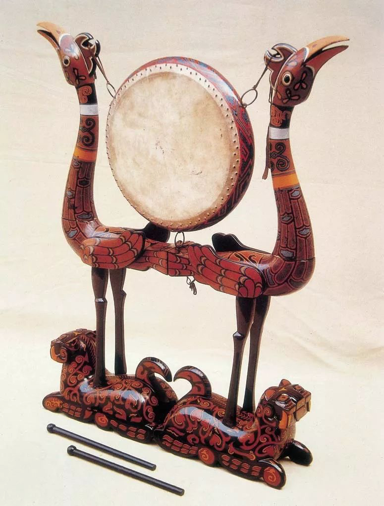 此外,古代軍(jun) 隊還利用鼓聲不同的頻率,指令軍(jun) 隊采取相應的進攻速度。《尉繚子》中記載了三種不同頻率的鼓聲:一步一鼓是要求步伐整齊地緩步前進,十步一鼓是要求快步前進,當鼓聲連續不斷時則意味著要發起衝(chong) 鋒。 《孫子兵法》中指出:金鼓者,所以一民之耳目也,……使勇者不得獨進,祛者不得獨退,此用眾(zhong) 之法也。虎座鳥架鼓。來源/網絡