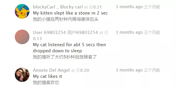 當然這專(zhuan) 輯到底管不管用,還得大家的貓聽了才說的算。多數貓主人在這張專(zhuan) 輯中的《Cosmo's Air》下麵評論,聽完之後貓就想睡覺了。