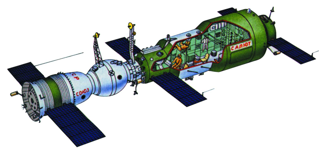 禮炮一號與(yu) 聯盟十一號複合體(ti) 在軌飛行示意圖