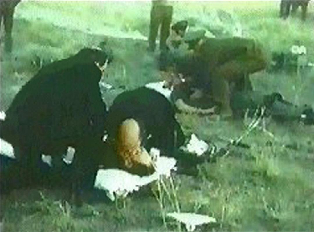 聯盟十一號飛船返回艙著陸後,營救人員對航天員進行搶救
