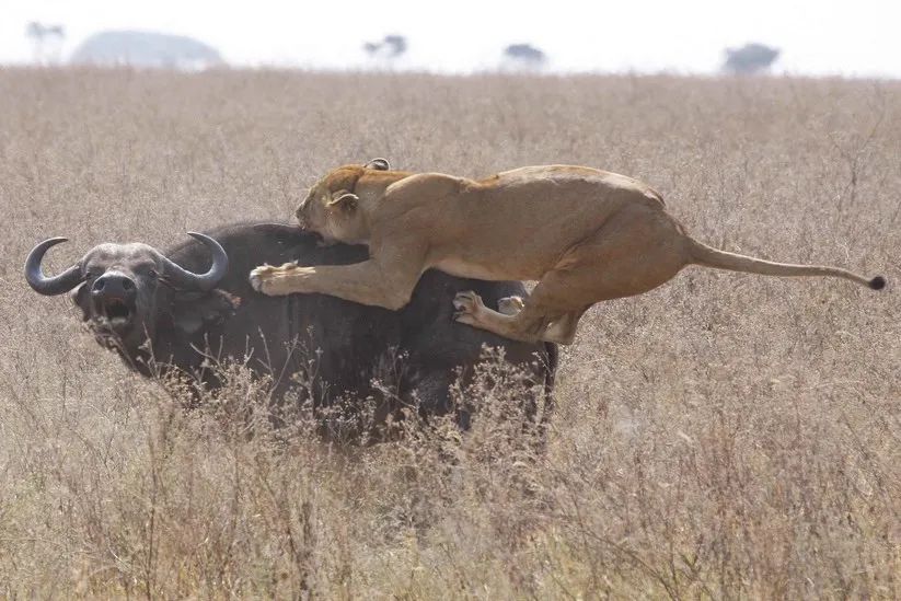 遭受獅子(Panthera leo)攻擊的非洲野水牛(Syncerus caffer) | Wikimedia Commons, Demetrius John Kessy / CC BY 2.0(https://creativecommons.org/licenses/by/2.0)