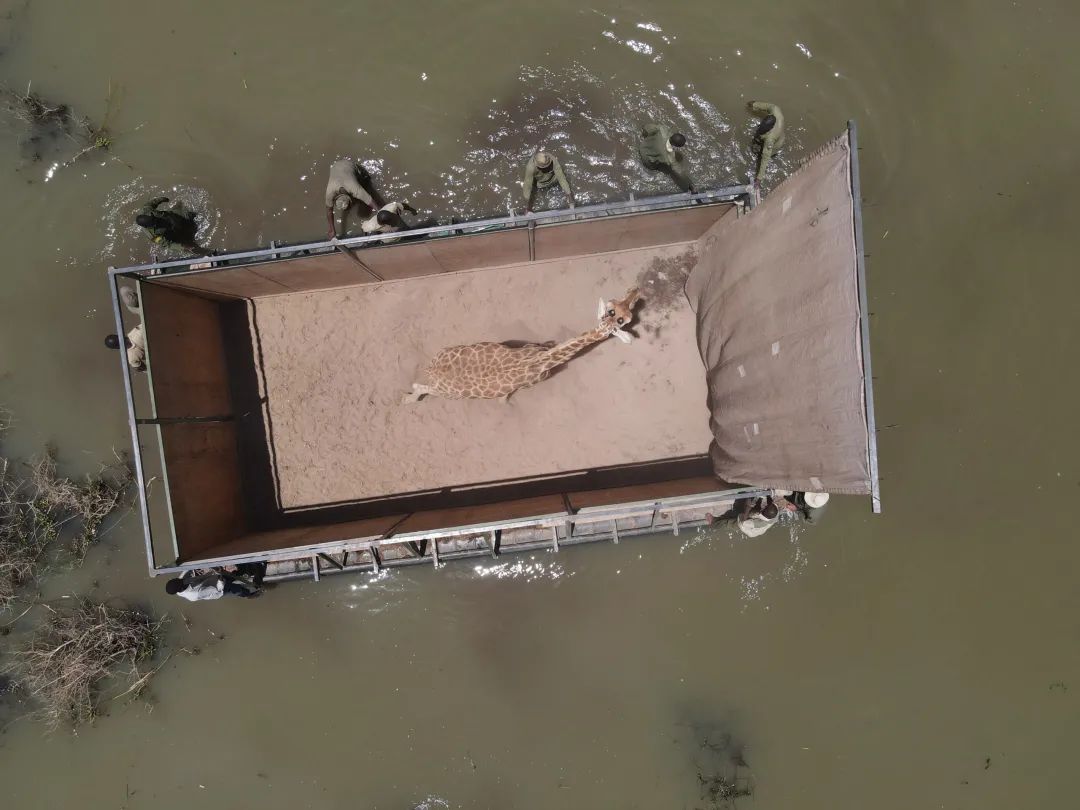 2020年12月2日,雌性長頸鹿Asiwa成為(wei) 第一隻撤離小島的長頸鹿。那時候,因為(wei) 不斷上漲的水位,Asiwa已經獨自被困於(yu) 一隅,無法回到同伴身邊。