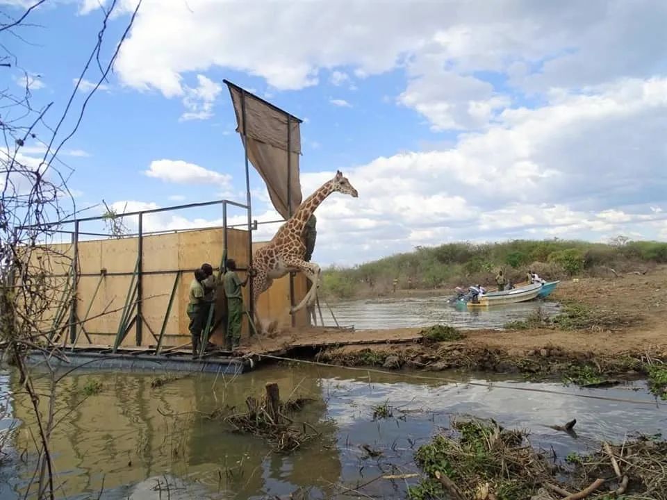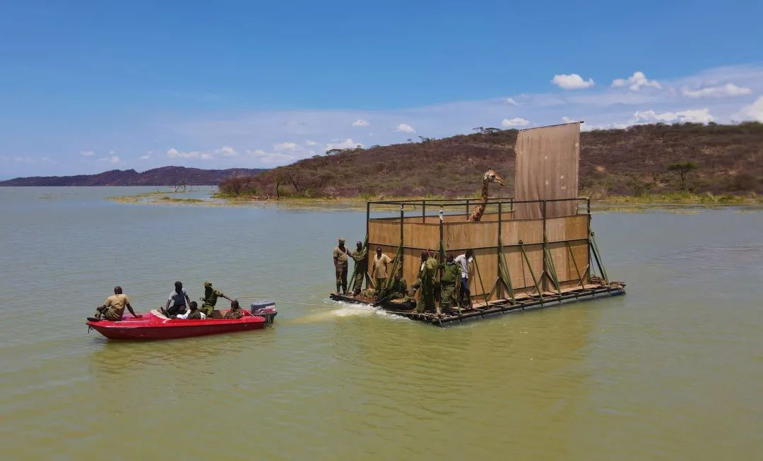 在肯尼亞(ya) ,人們(men) 花了15個(ge) 月執行了一項“長頸鹿救援行動”,幫助9隻長頸鹿搬了家——從(cong) 一個(ge) 即將被淹沒的小島,坐船搬到了大陸上的自然保護區裏。