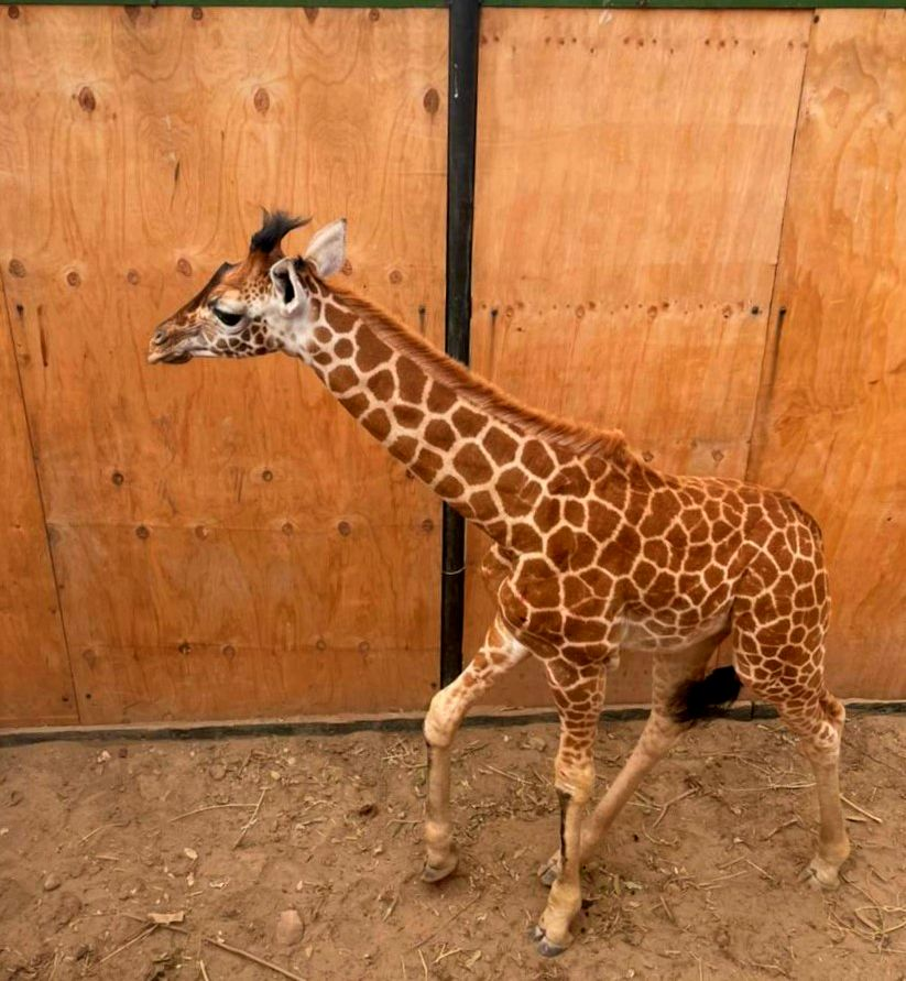 當小長頸鹿Noelle跟在媽媽後麵走出方舟,踏上陸地揚起幹燥的塵土時,在場的所有人都如釋重負。
