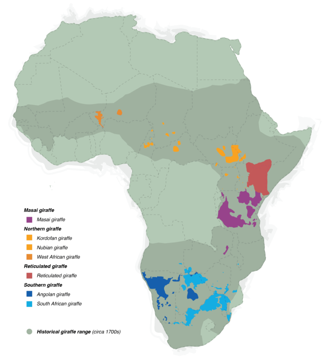 4種長頸鹿在非洲的分布情況