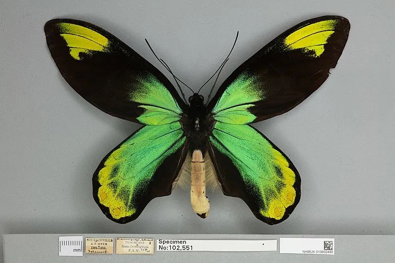 倫(lun) 敦自然博物館的亞(ya) 曆山大鳥翼鳳蝶,雄性 | Peter Wing / Wikimedia Commons