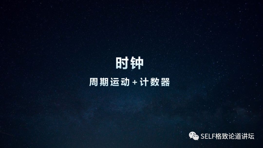 時間我說不上來,但是用來測量時間的是時鍾。我倒是可以給大家解釋解釋。用一句最簡單的話來解釋時鍾,它就是周期運動加一個(ge) 計數器。