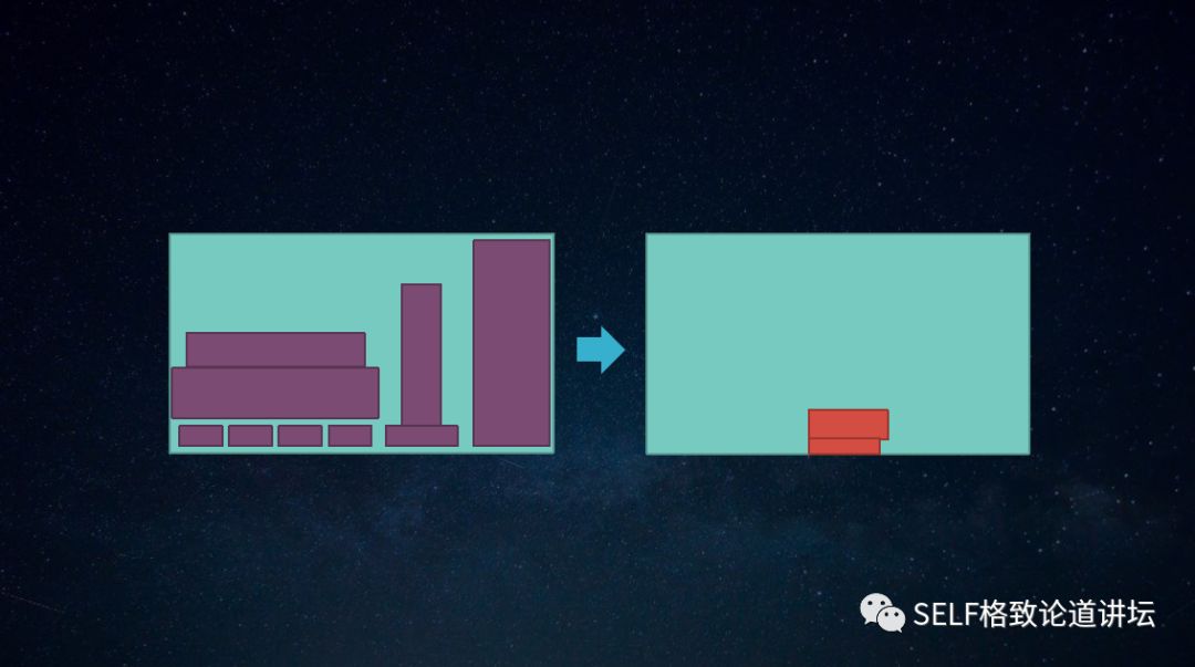 聽完相關(guan) 報告後,我們(men) 整個(ge) 後背都是涼的,汗都下來了。為(wei) 什麽(me) 呢?大家看看這兩(liang) 張對比圖,紫色部分就是當時原理樣機在實驗室所占的空間,紅色部分代表“天宮二號”上的冷原子鍾占的空間。