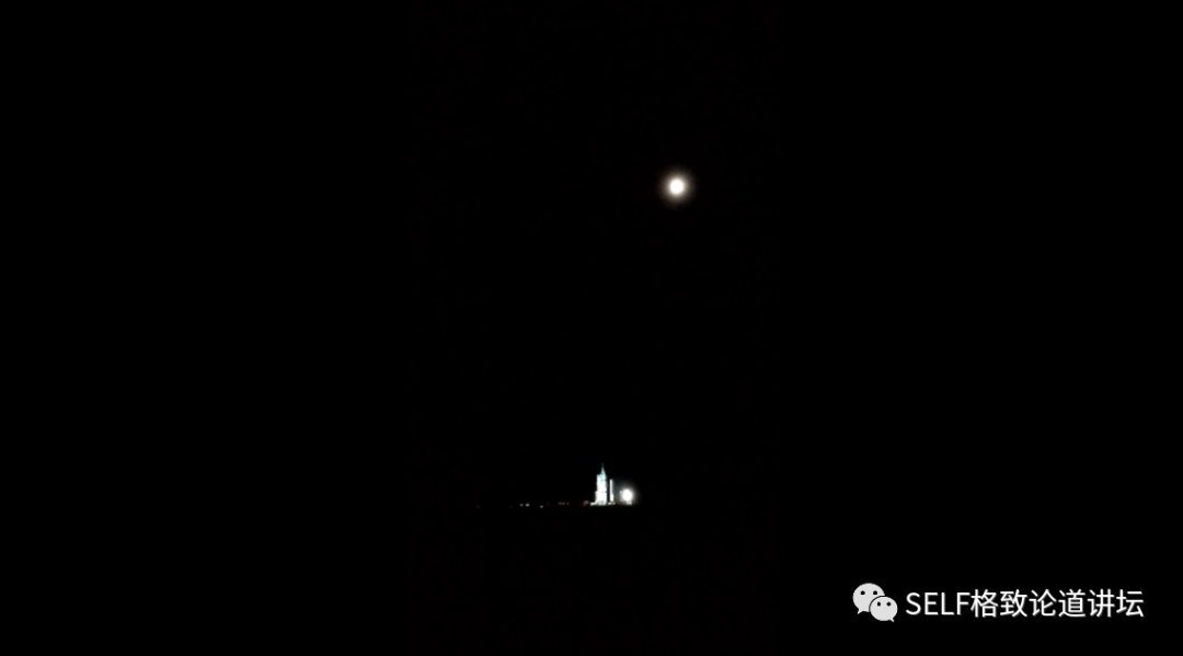 這張照片就是“天宮二號”發射那晚,我的同事在現場用手機拍下來的。那天是中秋,月亮非常圓,非常漂亮。