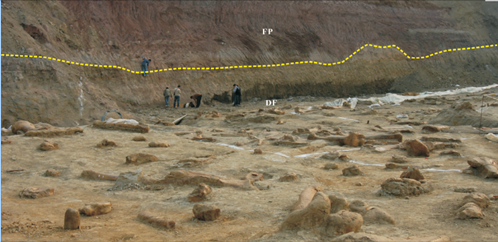 泥石流一般發育於(yu) 衝(chong) 積扇靠近上遊區,具有近源、較強的搬運動力條件和快速堆積特點,能短時、快速肢解生物遺體(ti) ,近距離攜運體(ti) 型較大或較重的動物殘體(ti) 。