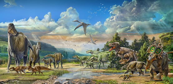 晚白堊世時期,諸城是白堊紀各種恐龍的樂(le) 園,後來,因某種未知原因(可能氣候變得幹旱),大批量恐龍死亡,屍體(ti) 在荒野中暴露了一段時間,遺體(ti) 腐爛;在泥石流的搬運作用下,被匯聚在低窪處(諸城各化石點),並被迅速掩埋;在長時期的成岩作用下變成化石。