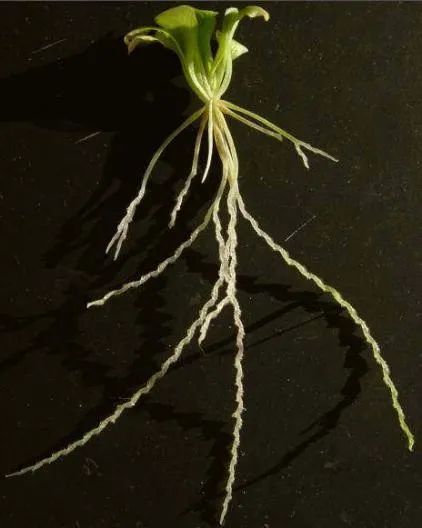 捕蝦籠:很多朋友都見過捕蝦籠,圓柱形的網籠,兩(liang) 側(ce) 有多個(ge) 向內(nei) 收緊的小孔,魚蝦通過小孔進入捕蝦籠之後就很難逃脫出來。螺旋狸藻的捕蟲器也恰似一個(ge) 隻進不出的微型迷宮,獵物則是原生動物。螺旋狸藻的捕蟲器看上去像是一小截白色帶有螺紋的根,其實它仍舊是葉片演化來的,內(nei) 部有許多逆生的細毛,原生動物進入捕蟲器後螺紋和細毛會(hui) 阻止其反向遊動,隻能向更深處遊去,最終成為(wei) 螺旋狸藻的一頓大餐。螺旋狸藻是目前已知的唯一一種獵捕原生動物的食蟲植物。