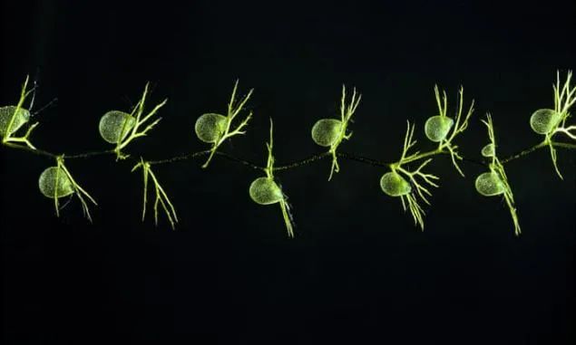 吸塵器:生活在水中的狸藻類植物被譽為(wei) 植物界最敏捷的殺手,狸藻枝條上生有許多漂浮的捕蟲囊。狸藻的捕蟲囊是靠如吸塵器一般強大的吸力來捕蟲的,它可以通過排水保持內(nei) 部真空,當浮遊動物靠近捕蟲囊觸動到感應毛時,囊口的單向膜瓣就會(hui) 向內(nei) 打開,瞬間形成巨大的壓強差使浮遊動物被吸入囊中。囊口的剛毛細胞還可以調節囊內(nei) 水的壓力,保持消化液的濃度。