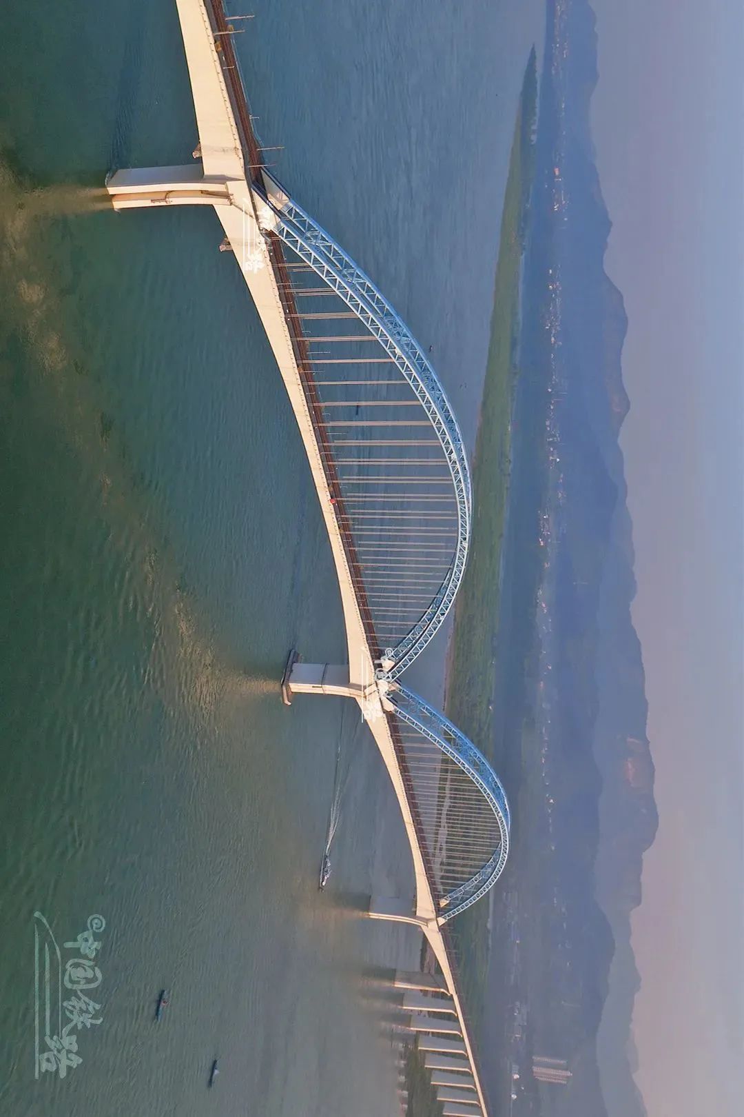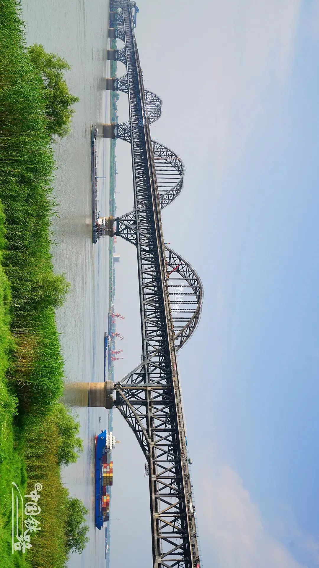 全長1106.3米,主跨360米,建成時是最大跨度的重載鐵路連續鋼桁係杆拱橋。
