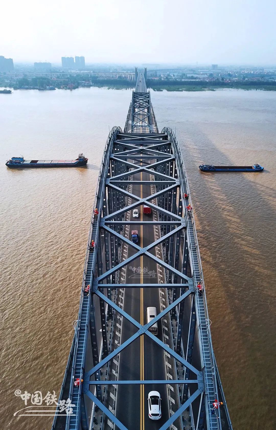 跨江正橋長1806米,鐵路橋全長7675米,自北向南,上層為(wei) 4車道公路橋,下層為(wei) 雙線鐵路橋,是京九鐵路咽喉工程。