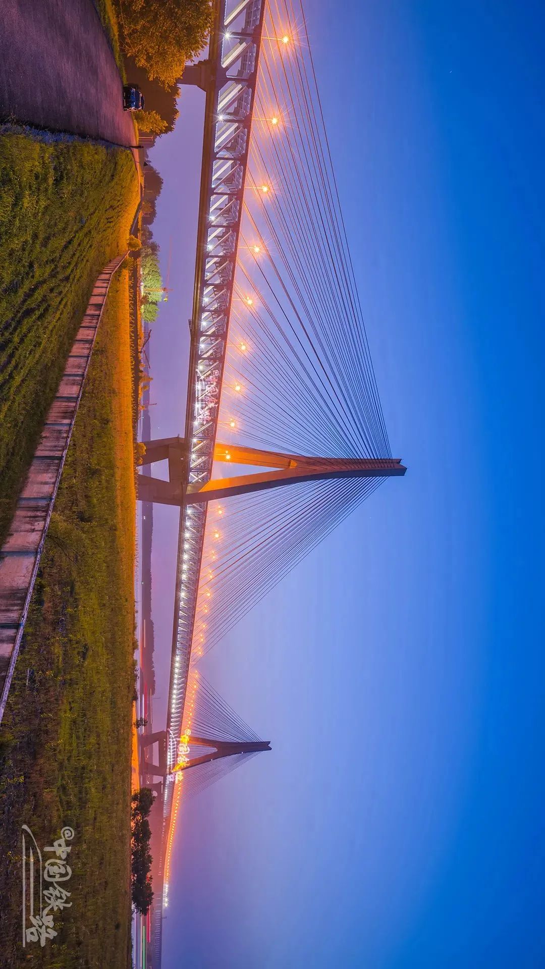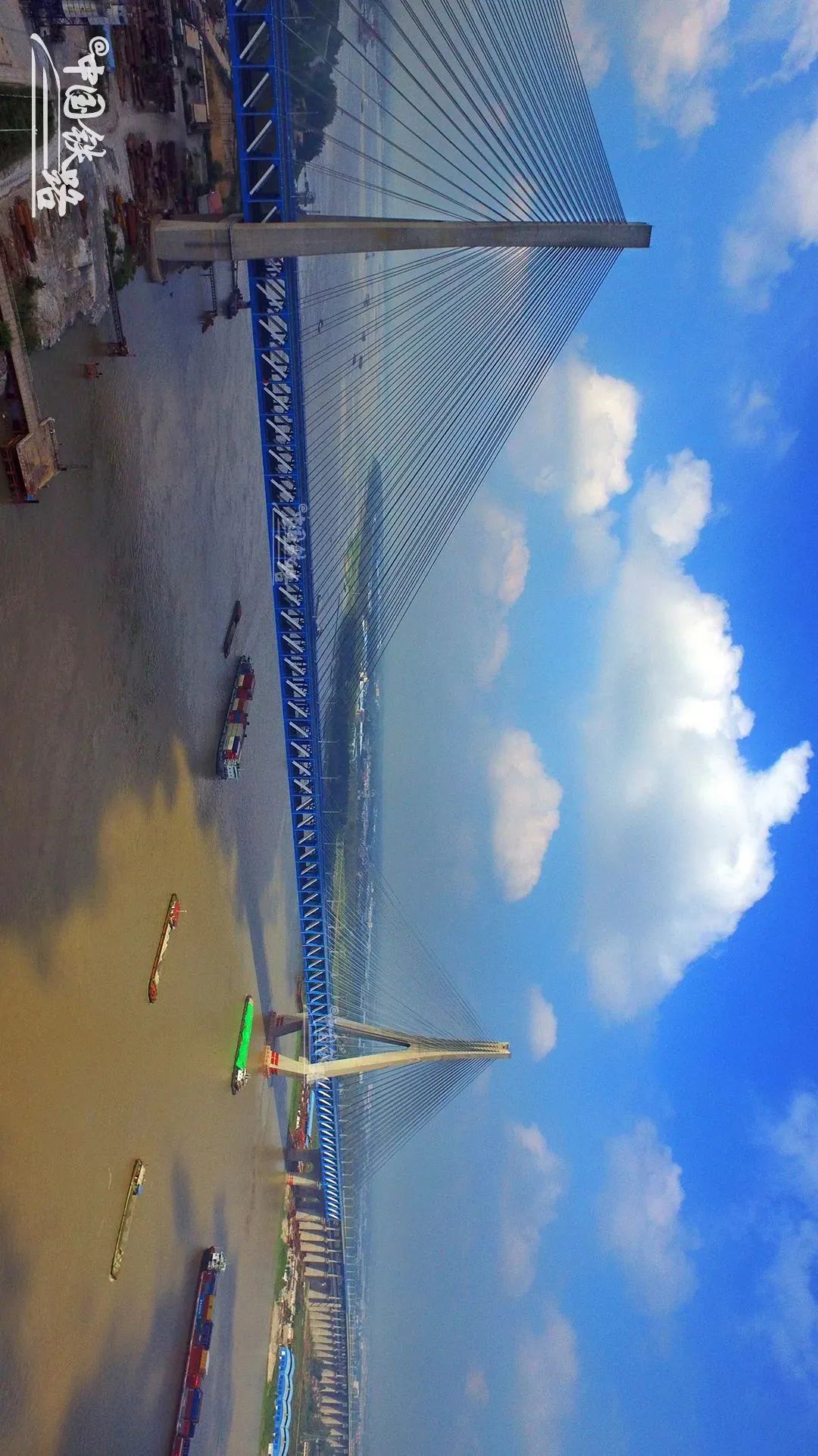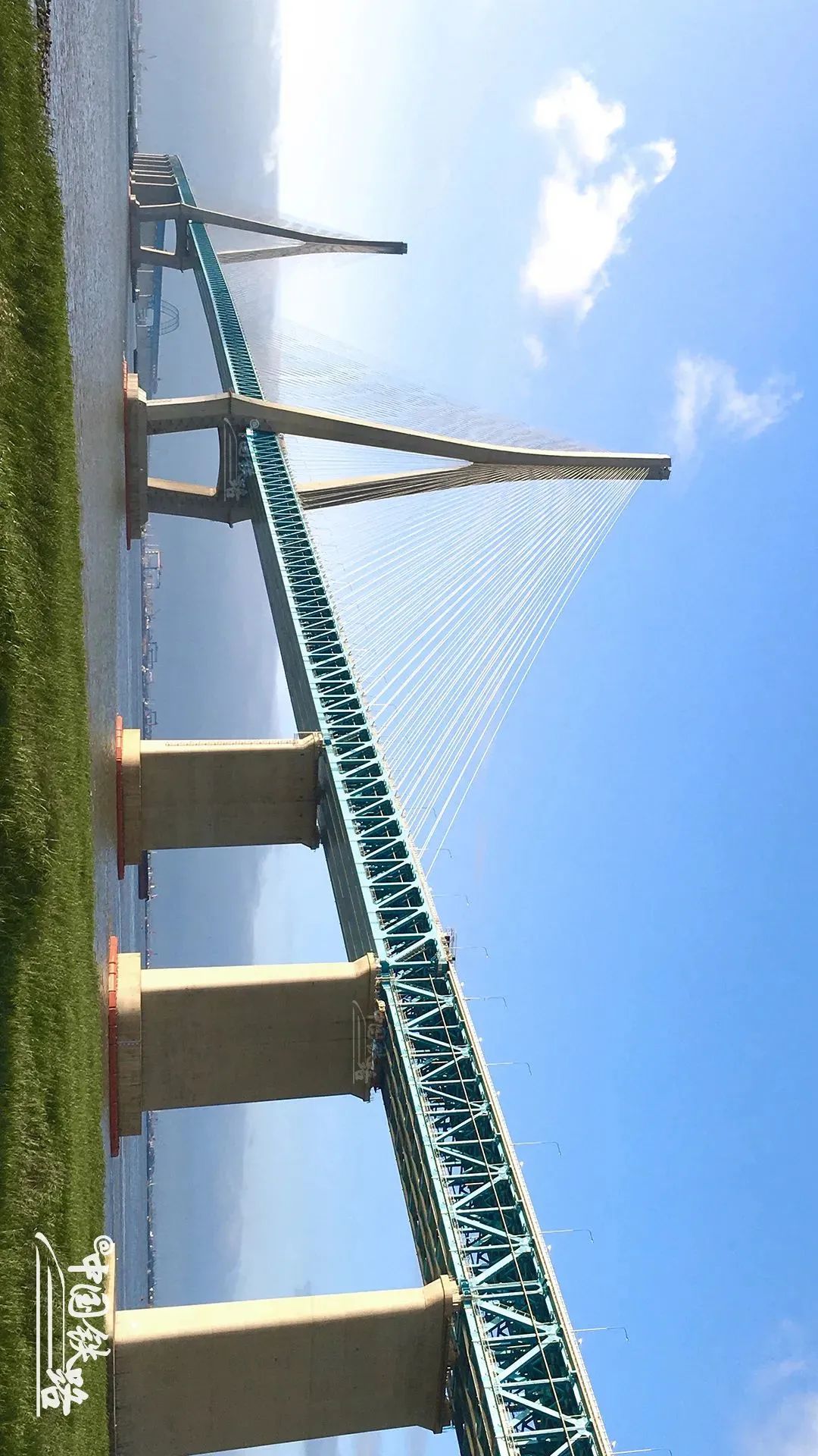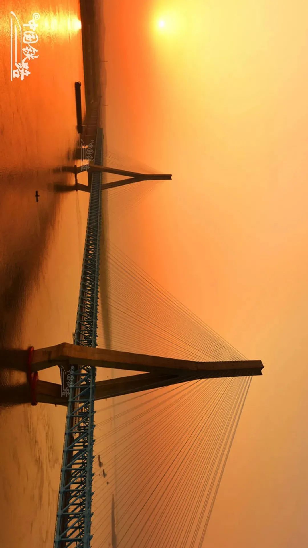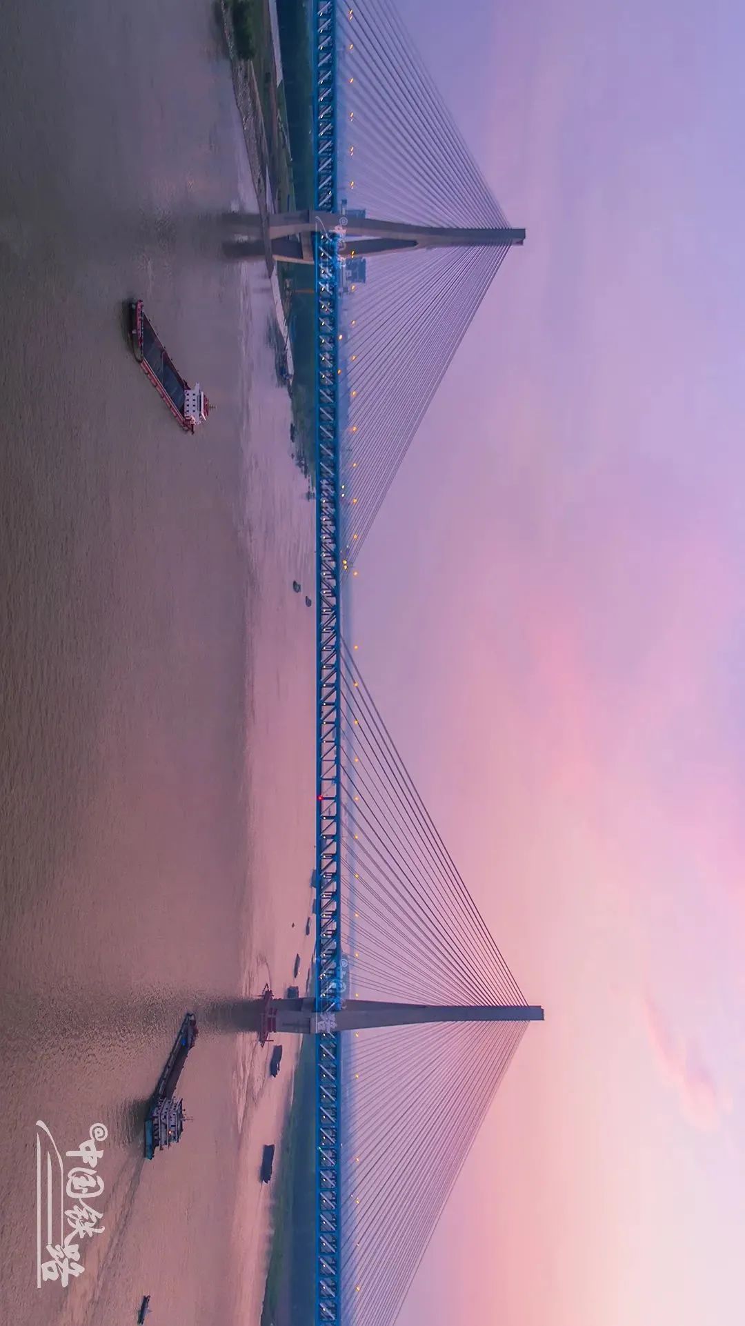 全長1290米,這座雙塔斜拉橋的630米主跨刷新了公鐵兩(liang) 用斜拉橋跨度的世界紀錄。