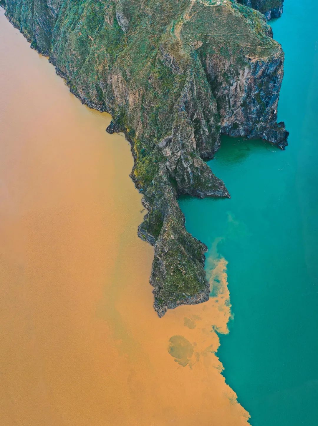 ▲ 臨(lin) 夏黃河青黃交界處,黃如漢風,青如唐韻。攝影/胡文凱