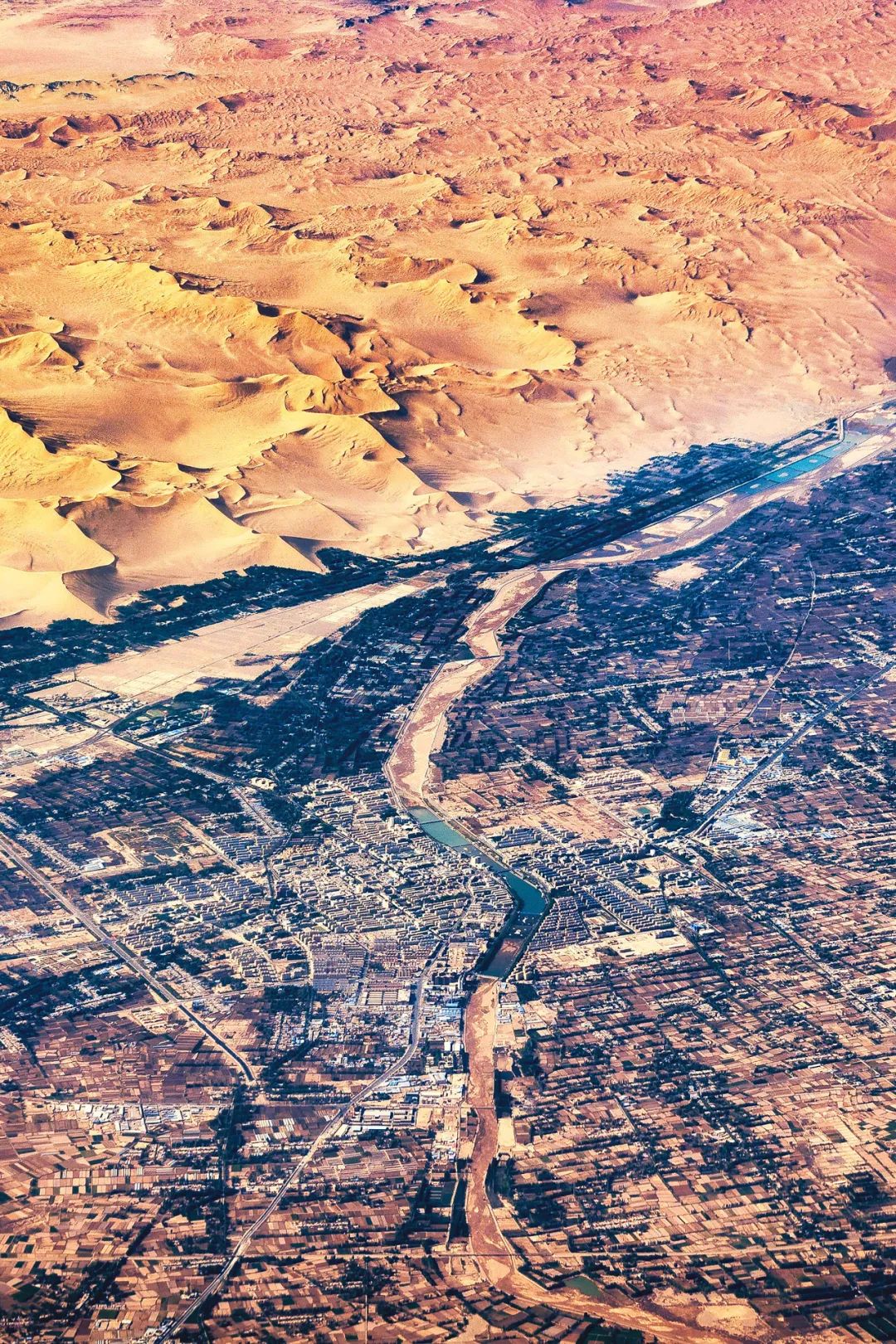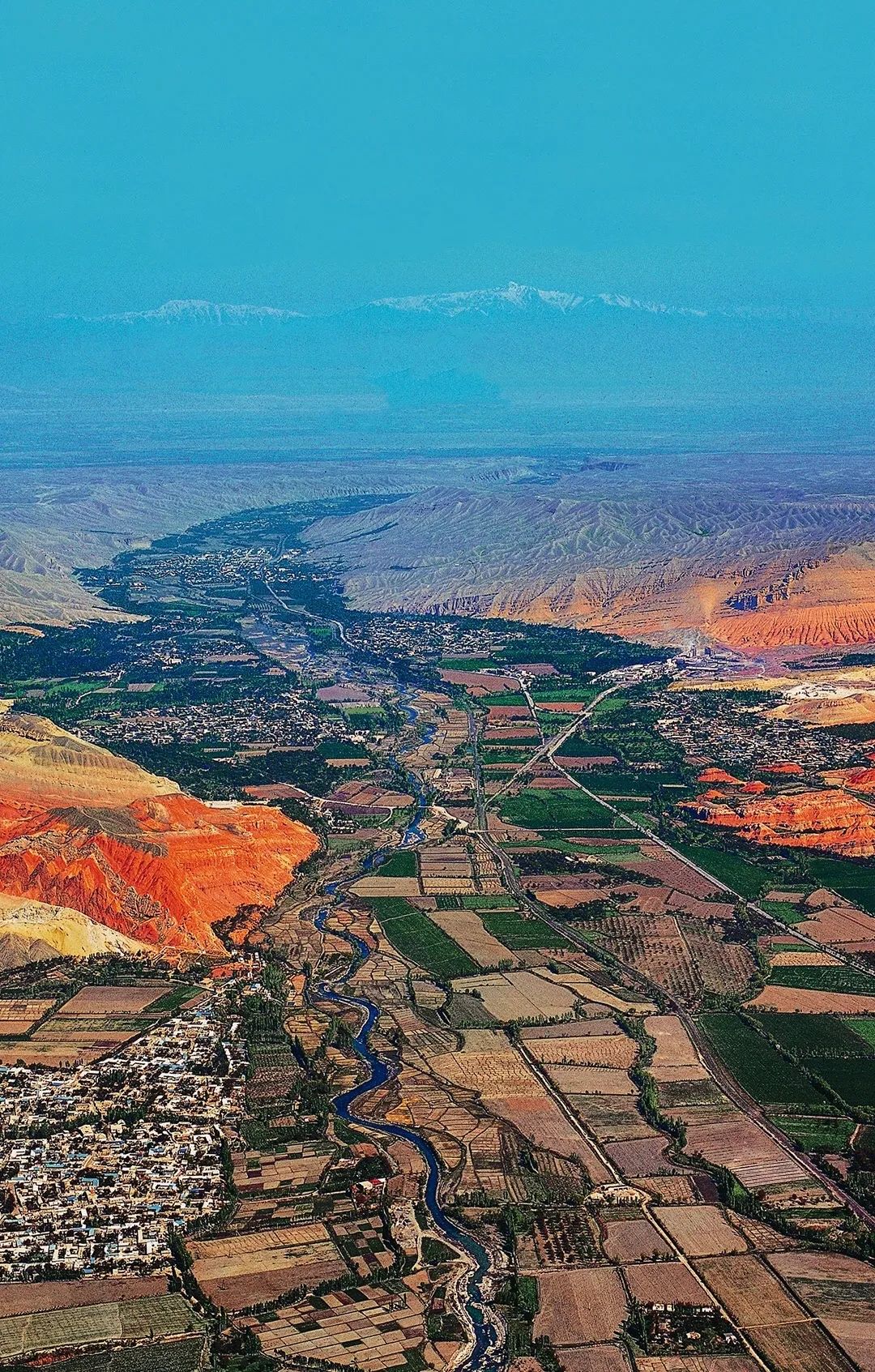 ▲ 河西走廊上,丘陵、平原、河流、農(nong) 田連綿不斷,延伸向遠方。攝影/李勇俊