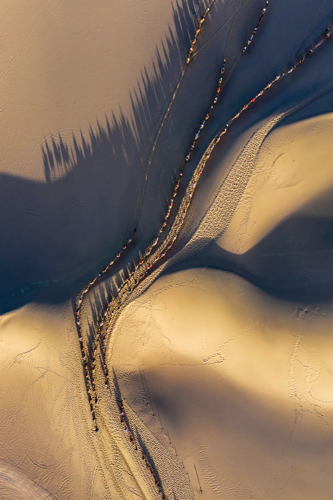 ▲ 鳴沙山的駱駝隊,埋著千年商旅的行跡。攝影/徐海洋