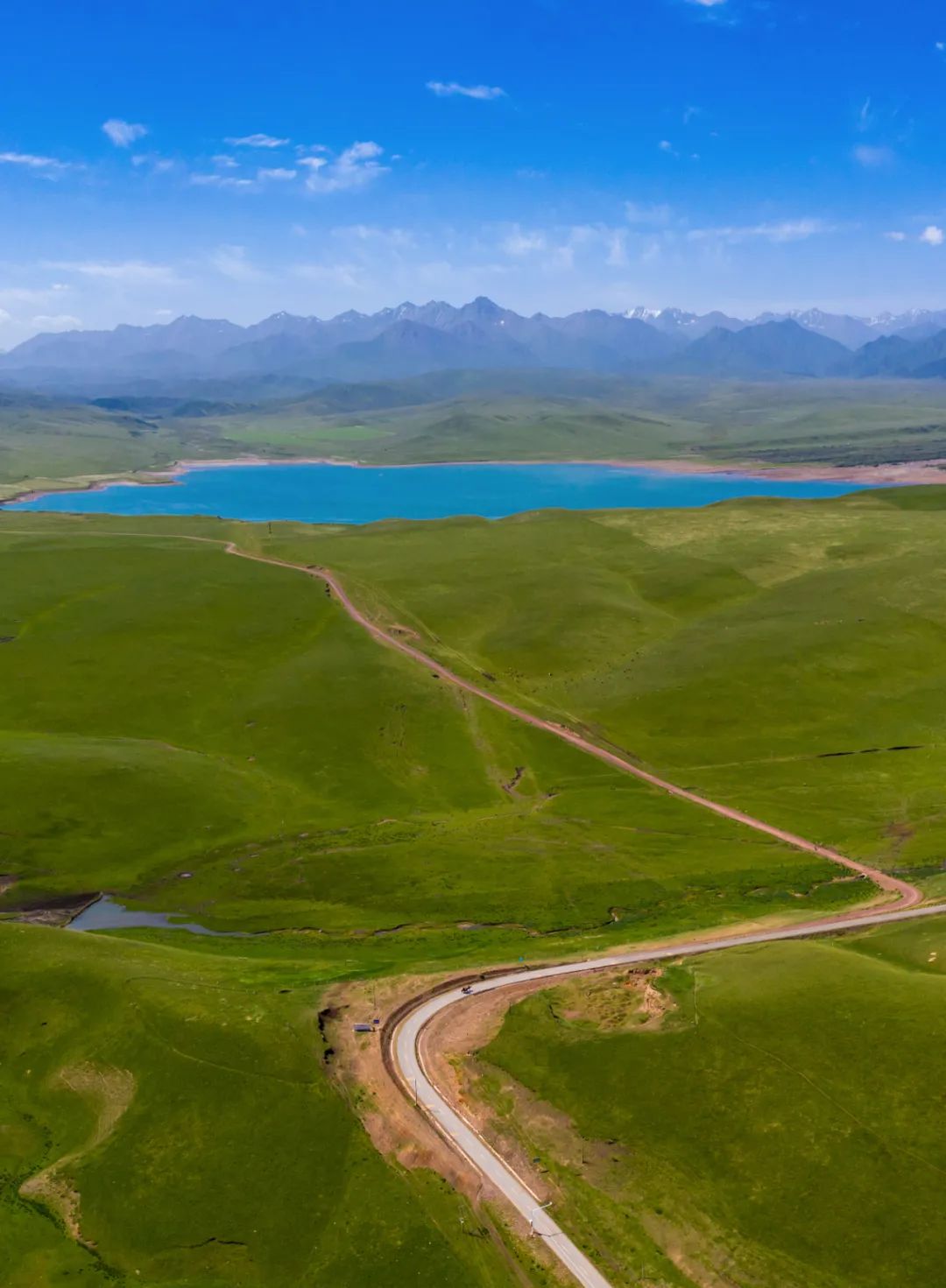 ▲ 張掖皇城草原,接著其後祁連山雪山,恰似一條“通天之路”。攝影/楊文傑