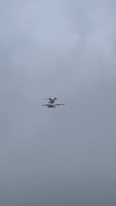 有媒體(ti) 分析認為(wei) ,這可能是小鳥之間正常地嬉戲,就是海鷗在空中相互追逐打鬧。同時還有一種觀點認為(wei) ,根據以往「鳥騎鳥」的情況,這可能是在嚐試交配。