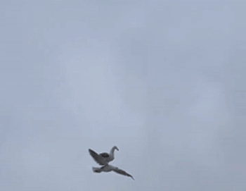 說的就是下麵這隻海鷗,別的鳥在天上飛需要撲棱翅膀,它可倒好,直接飛到同伴背上,擱這兒(er) 玩起了代駕模式: