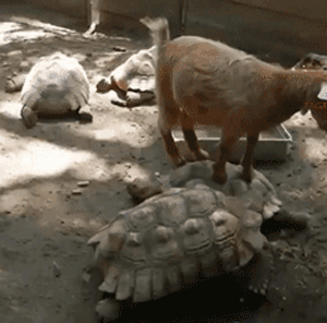 甚至還有隻羊也站在了龜的身上,我隱約覺得有點「過分」了:
