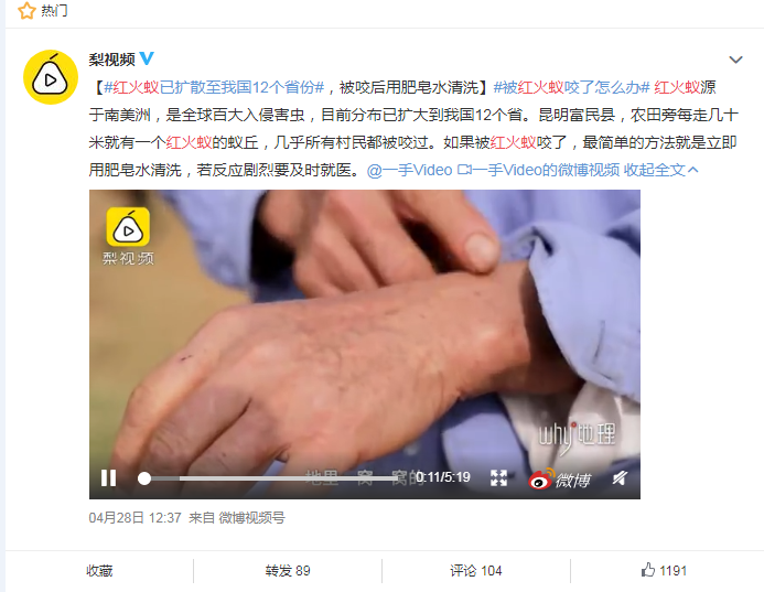 立夏一過,天兒(er) 是越來越熱。酷暑當下,露胳膊露腿兒(er) 的難免被蚊蟲叮咬,這其中最常見的就是蚊子,一咬一個(ge) 包,不過癢個(ge) 兩(liang) 三天也就下去了。如果說螞蟻也咬人,而且被咬之後輕則紅腫重則休克甚至有生命危險,是不是會(hui) 覺得略顯浮誇?