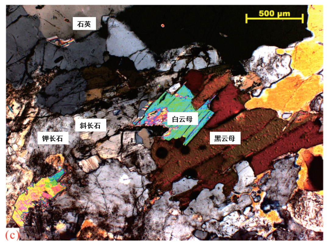石英、鉀長石、斜長石、黑雲(yun) 母、白雲(yun) 母。
