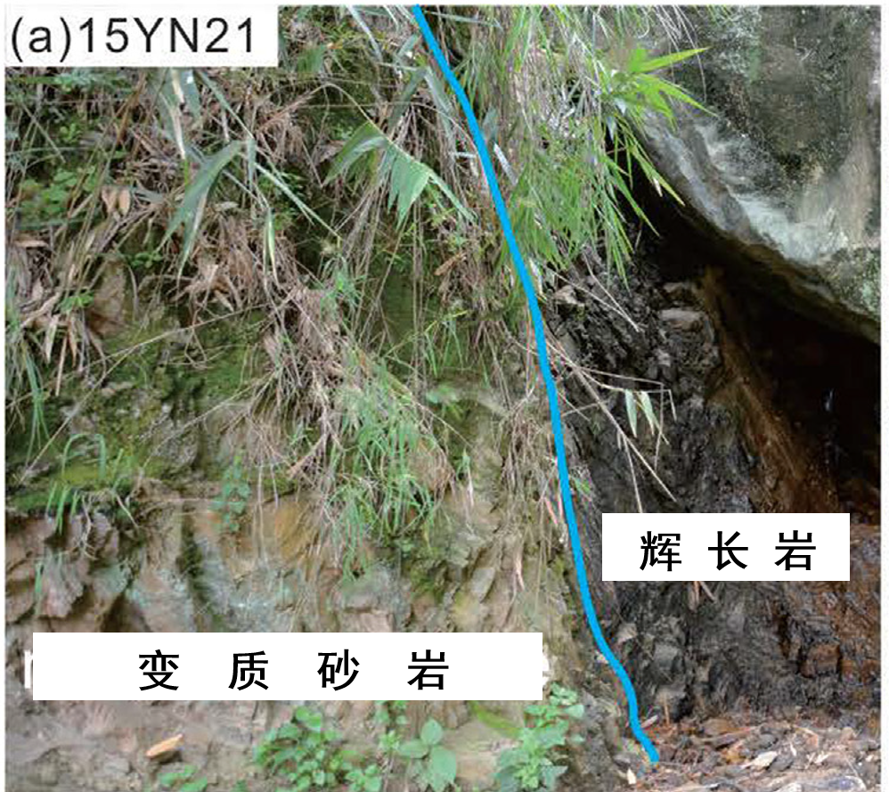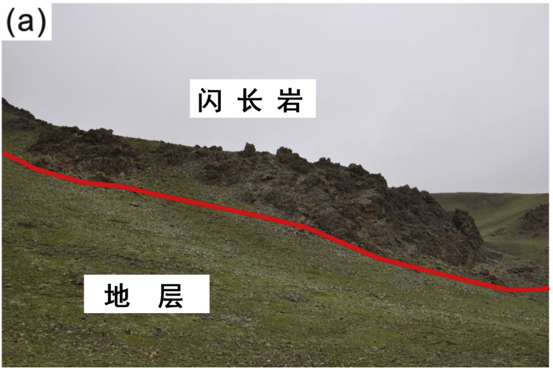 藍線右邊黑色的就是輝長岩,