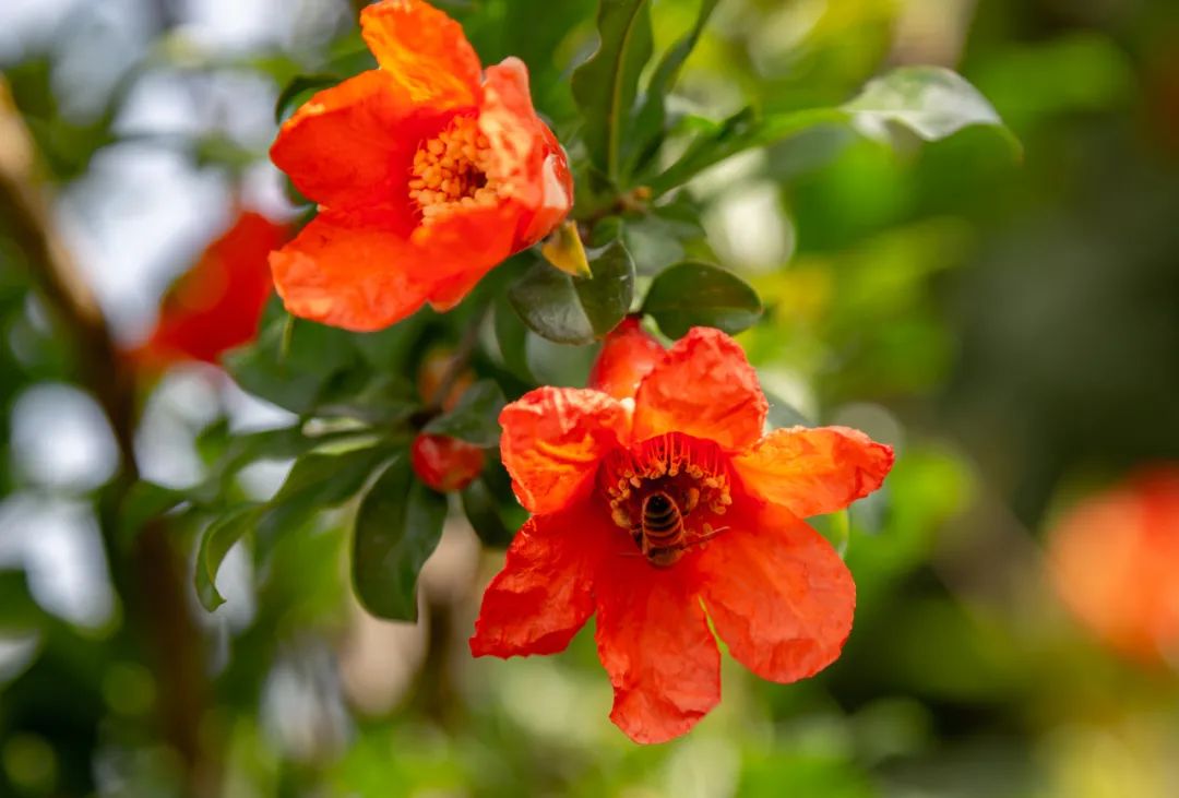 宋代詩人蘇舜欽在小院裏臥席納涼,看石榴花映著晶瑩的門簾,在夢裏聆聽鶯鳴婉轉,別有一番夏日情致。