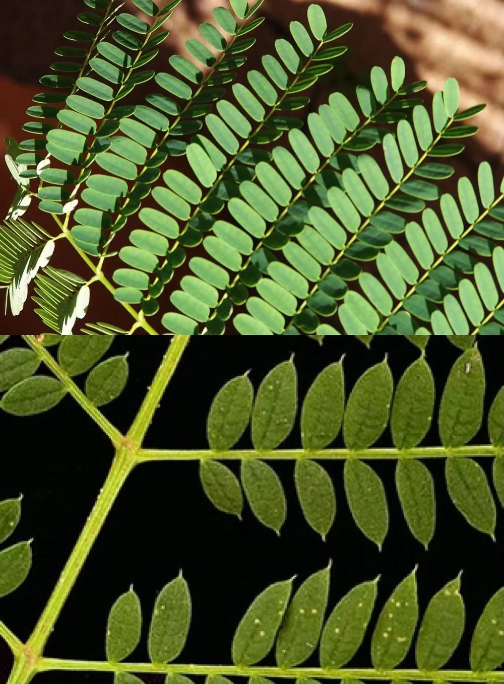 這對cp都是大喬(qiao) 木,葉片卻長得小巧可愛。實際上,我們(men) 看到的一片葉子是它的小葉,一整片的葉子呈二回羽狀複葉的形態。也就是多枚小葉羽毛似的排列組成完整的一片葉。