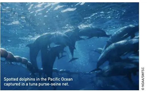 根據美國國家海產(chan) 品部(NMFS)公布的數據,僅(jin) 在1986年該地區就共有124597頭海豚因為(wei) 金槍魚產(chan) 業(ye) 喪(sang) 生。而美國國家海洋和大氣管理局(NOAA)則指出,東(dong) 太平洋熱帶地區的金槍魚產(chan) 業(ye) 從(cong) 20世紀50年代起故意追蹤和捕撈海豚,累積造成了6百萬(wan) -7百萬(wan) 頭海豚死亡,該數字也是全球最高。
