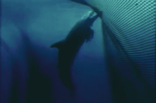 在20世紀50年代前,美國漁民通常在海豚出沒的海域設置誘餌釣金槍魚。但是在50年代末,因為(wei) 合成纖維漁網等技術進步,效率更高的圍網(purse sein)開始流行。圍網指的是,看到海豚後,漁船用大網將海豚以及下麵的魚群同時團團圍住,然後慢慢收緊漁網,因此這種捕魚法也叫做海豚網(dolphin sets)。