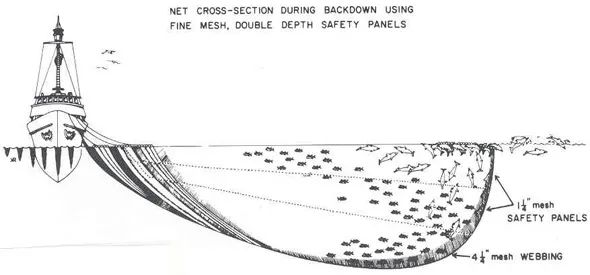 Medina Panel 漁網配合 backing down 操作,海豚更容易逃生。圖片來源:FAO