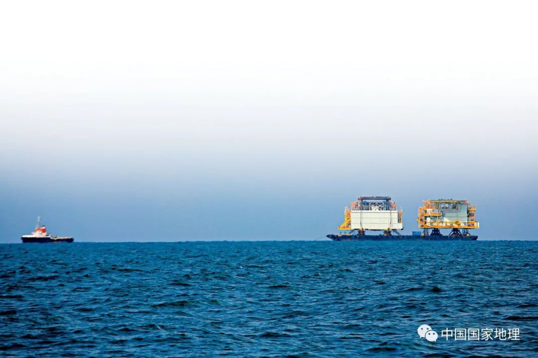 ◎ 2009年,在曾母暗沙附近,《中國國家地理》編輯部考察隊遇上了一艘長達100多米的駁船,它被一條石油勘探船拖著,駁船上裝載的是石油鑽井平台的組裝部件,它們(men) 都屬於(yu) 馬來西亞(ya) 。這一路上,遇到的一處處已建的、在建的、將要建造的馬來西亞(ya) 石油鑽井平台,深深地觸痛了每一個(ge) 人的內(nei) 心。有數據顯示,截止到21世紀初,馬來西亞(ya) 已在南海打出近百口油氣田,年產(chan) 石油3000萬(wan) 噸,天然氣近50億(yi) 立方米。(攝影/馬宏傑,圖自《中國國家地理》2010年10月)