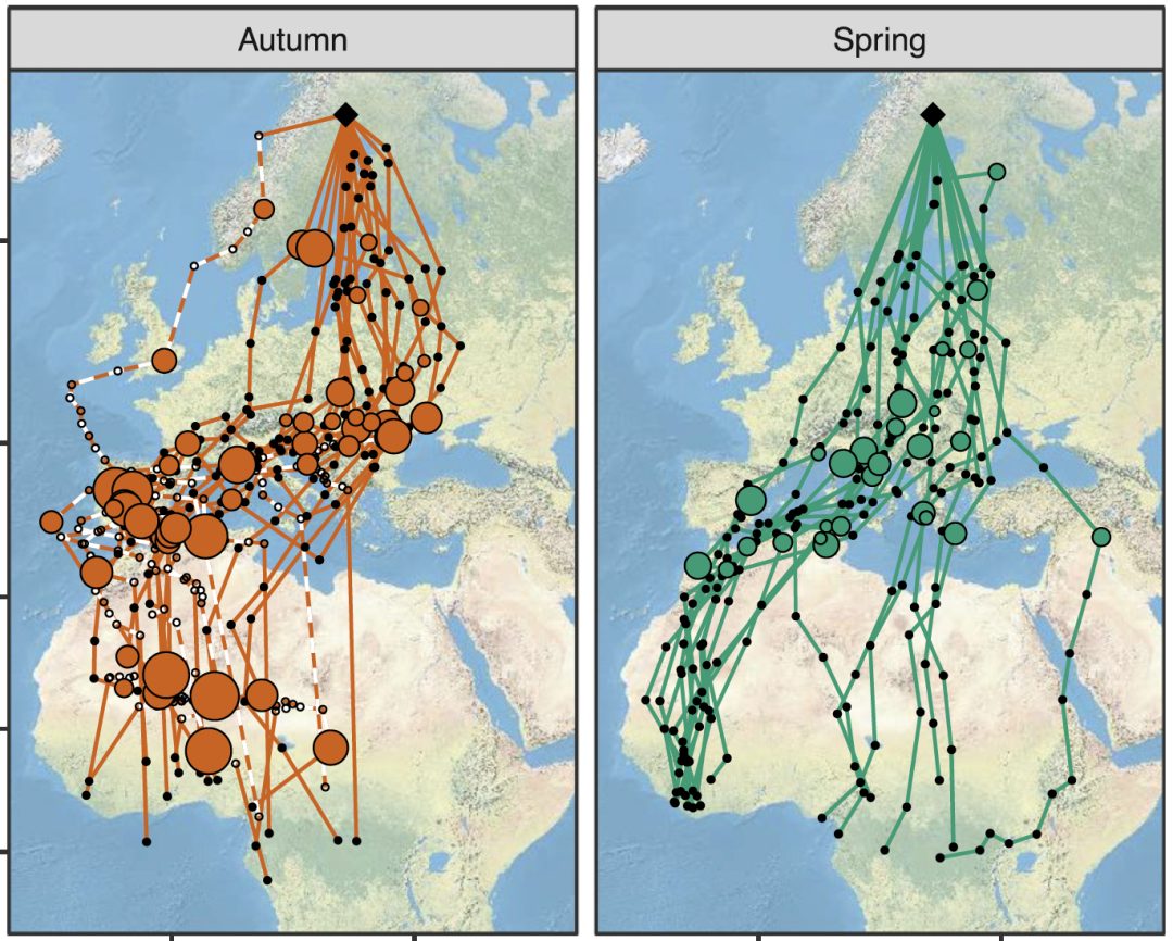 如此神奇的物種,人類當然也對它們(men) 倍感興(xing) 趣。最近瑞典隆德大學動物運動中心的蘇珊娜·阿克鬆和朱塞佩·比安科就發表了一篇論文,揭示了普通雨燕遷徙期間瘋狂的一麵。由於(yu) 雨燕飛到非洲度假後,幾乎總會(hui) 回到它們(men) 原來的繁殖地,研究人員在2010年、2012年和2014年捕捉了45隻成年雨燕,在它們(men) 身上安裝了微型地理定位儀(yi) ——為(wei) 了不影響它們(men) 飛行,這些裝置的重量不到它們(men) 體(ti) 重的3%。