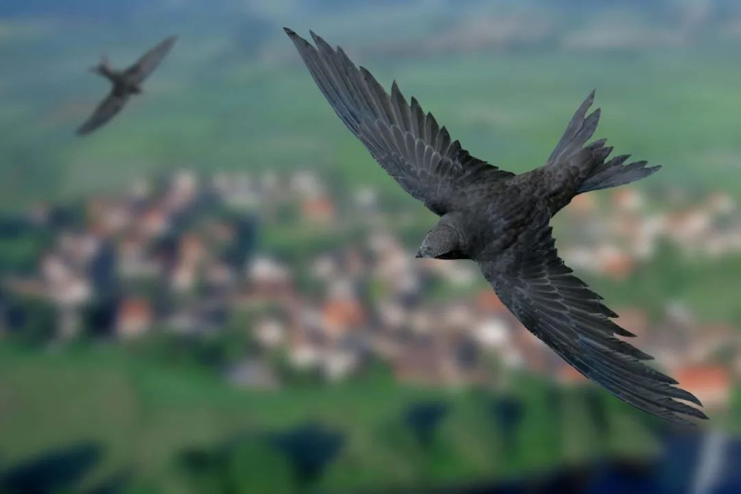 當然,過著這種候鳥生活的鳥類不在少數,甚至連富庶一些的人類也學到了,但普通雨燕最神奇的是,它們(men) 是唯一一種可以一年四季都在空中度過,從(cong) 來不接觸任何地麵及地麵任何物體(ti) 的動物。你可能會(hui) 覺得難以想象,一直停留在空中,它們(men) 是如何吃喝拉撒睡的呢?