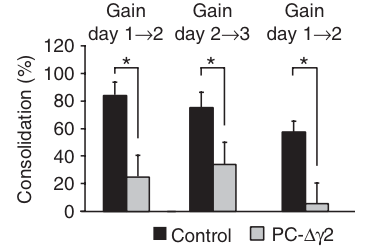 文章中的第一作者 Peer Wulff 設計了一組實驗,將小鼠分成兩(liang) 組,其中實驗組將浦肯野細胞中負責前饋抑製的 GABAA 受體(ti) 選擇性地移除,而另一組作為(wei) 對照組。實驗表明,盡管實驗組的運動上的表現並沒有與(yu) 對照組有明顯的差距,但其適應環境變化以及鞏固星空体育官网入口网站的能力相比對照組則大打折扣。
